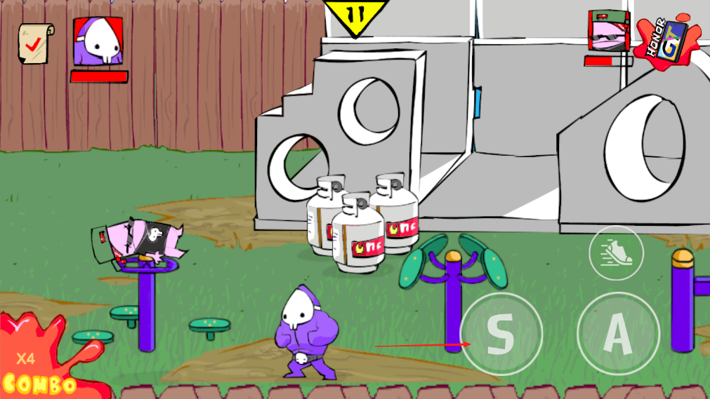 3、点击屏幕右侧如S,A等按钮,操控角色发动攻击,击败对手,获取胜利并推进游戏进程。