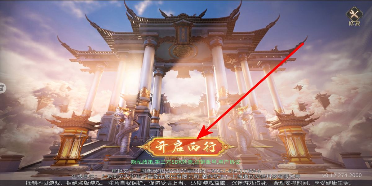 1、启动游戏,点击界面开启西行按钮,进入游戏初始流程,这是踏入暗黑西游世界的第一步,后续冒险将以此为起点逐步展开。