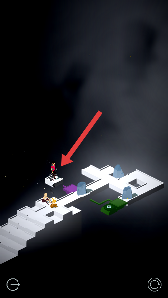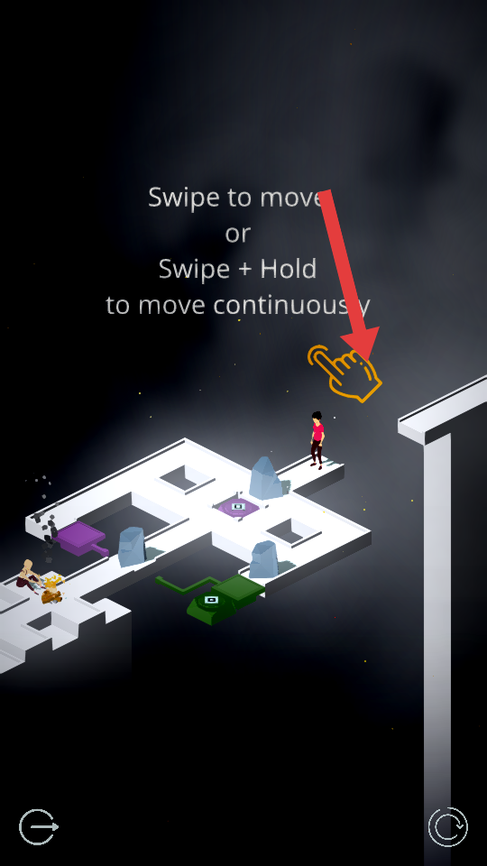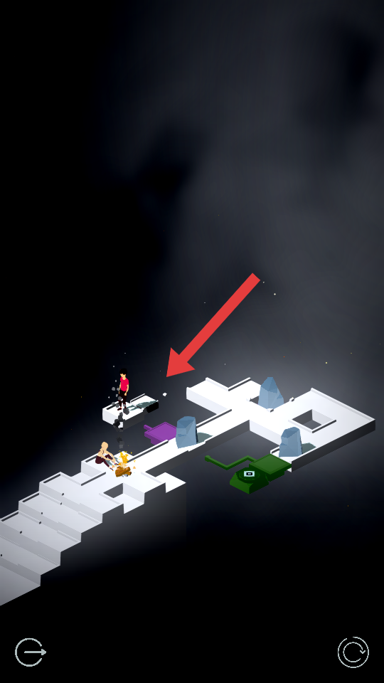 1、滑动屏幕控制红衣角色移动,遇阶梯滑动摇杆向上攀爬;靠近石块可尝试推动、利用其搭建路径。