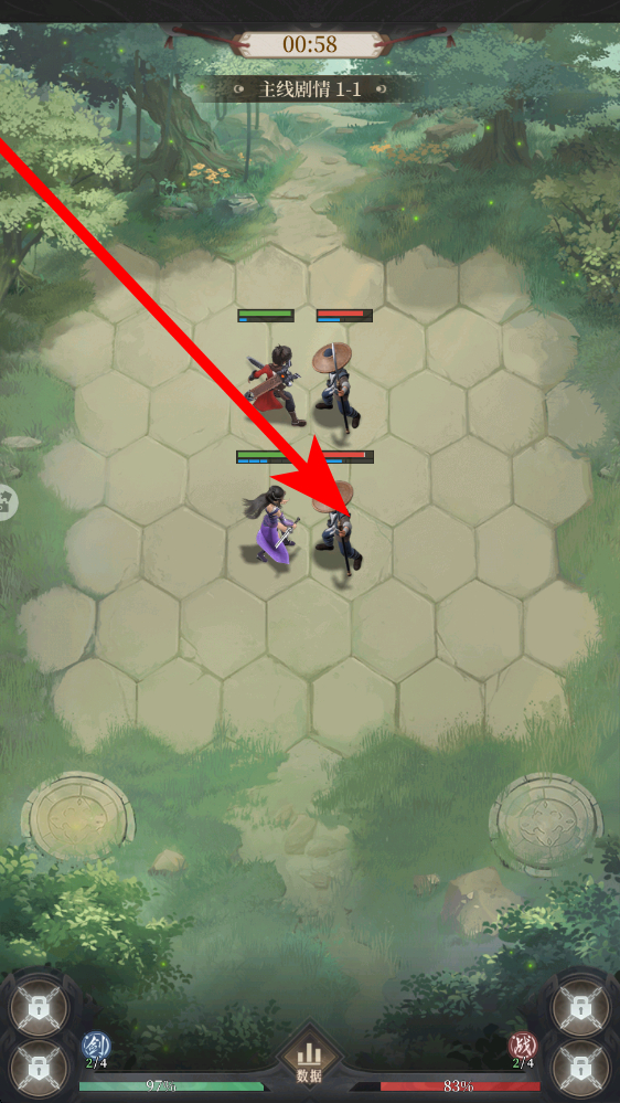 2、参与战斗,进入主线剧情对战,侠客自动展开战斗,观察站位与技能释放,借助阵营羁绊加成,应对敌方攻势,推动战斗直至取得胜利。