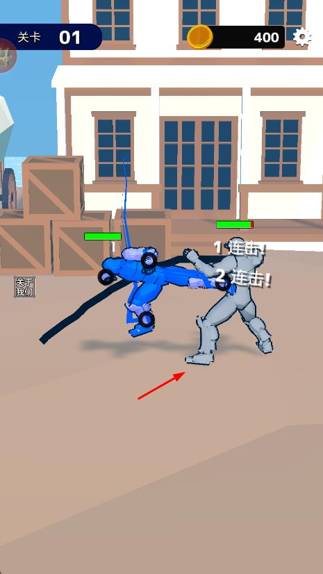 2、战斗中触发【1连击】【2连击】,持续攻击提升伤害,注意躲避反击,积累金币至400增强战力。