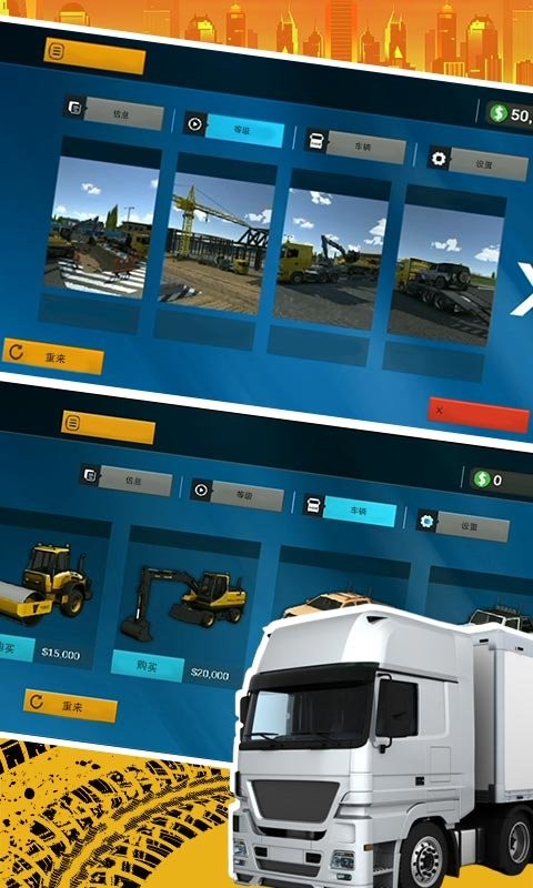 1、车辆操作细节:工程车操作包含虚拟方向盘、操作杆等细节设计,如挖掘机的铲斗角度调节、卡车的档位切换,让驾驶体验更贴近。