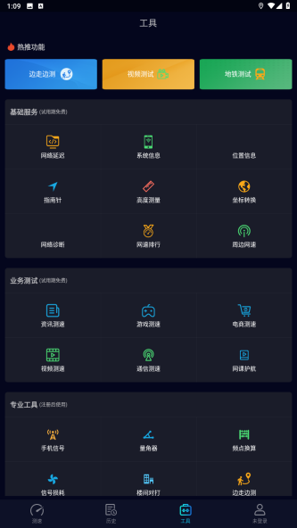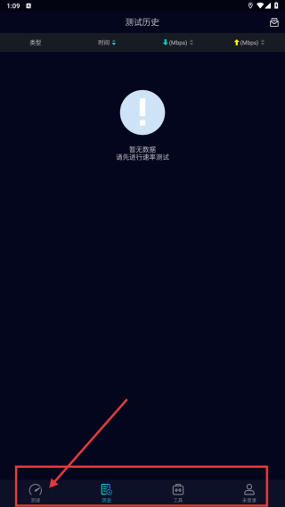 1、打开网络测试APP,点击底部速率,进入速率测试功能页面。