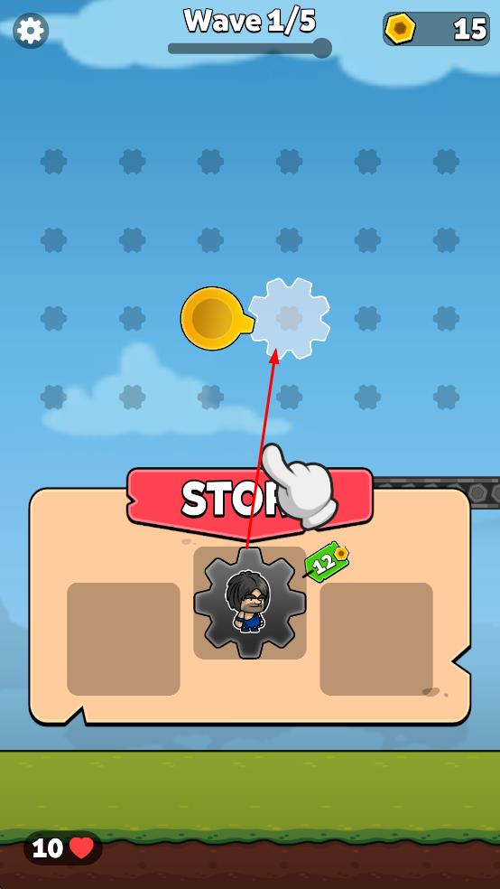 3、波次推进击败当前波敌人,积累金币,循环采购部署,完成5波挑战。