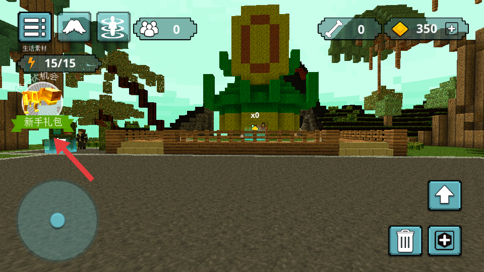 1、进入游戏后,选择初始出生区域,熟悉像素风格的操作界面,了解地图移动、资源拾取与基础建造的核心操作方式。