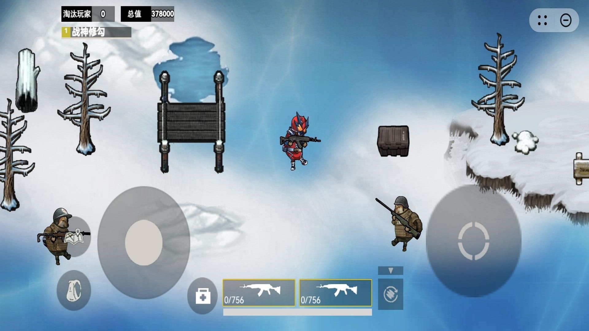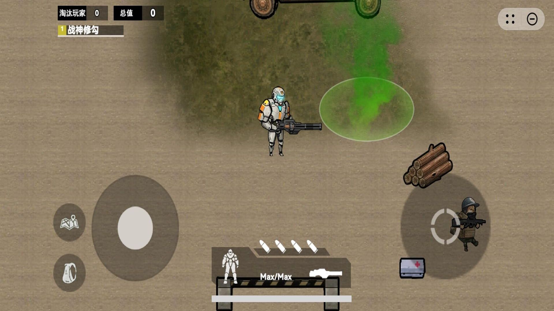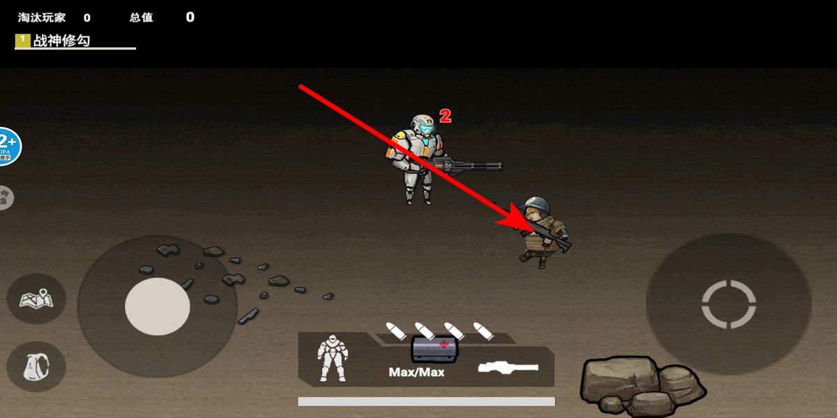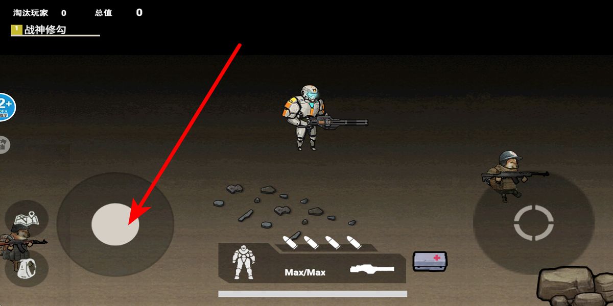 1、点击开始游戏,选好对战模式后进入战场,界面左侧摇杆控制修勾或机甲移动,灵活走位躲避敌人攻击,抢占有利战斗位置。