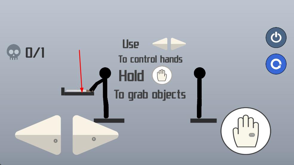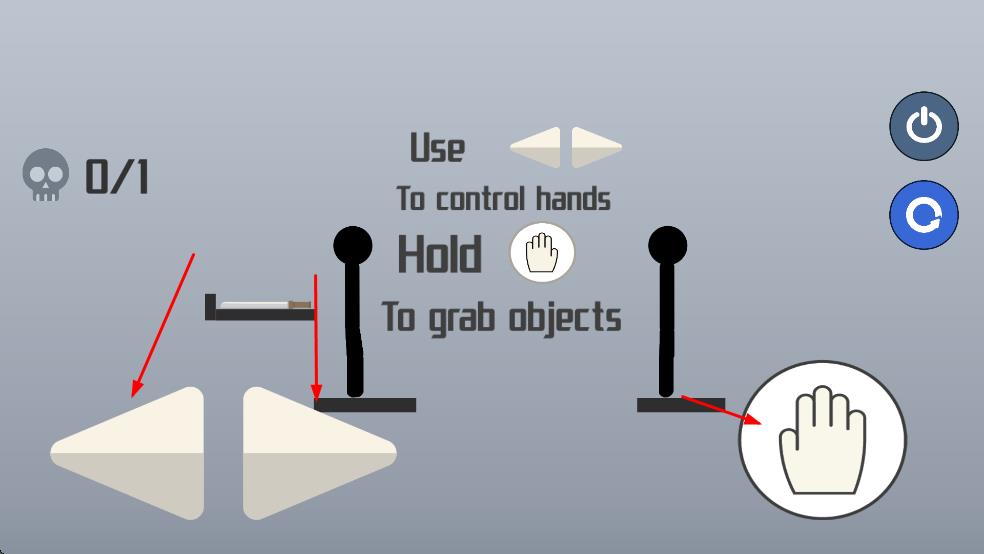 1、进入游戏界面,通过左右箭头按钮控制双手移动,长按右侧手型图标抓取场景内物品。