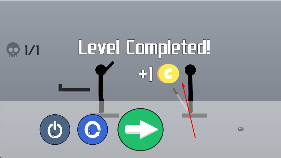 3、成功击败所有目标后,触发Level Completed结算,获取金币奖励,点击绿色箭头进入下一关。