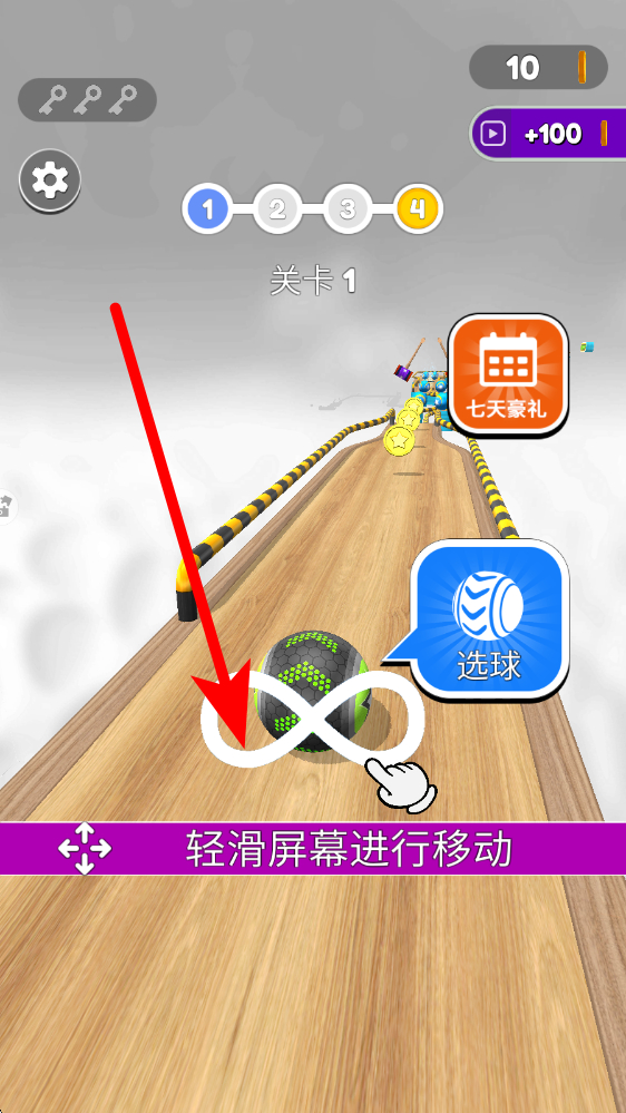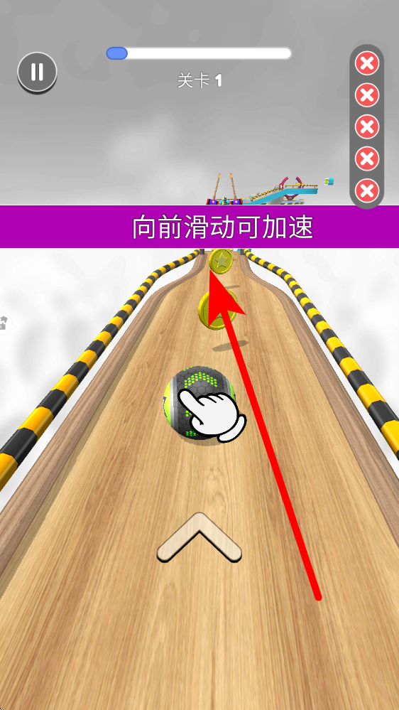 2、触发加速向前滑动屏幕可让小球加速,遇长距离障碍、密集金币时使用,借助速度快速通过、收集,注意把控时机防碰撞。