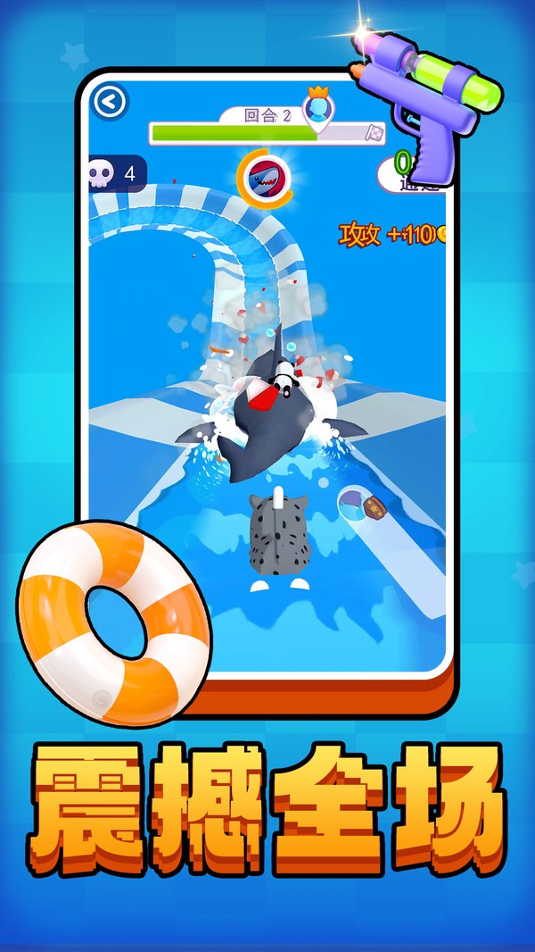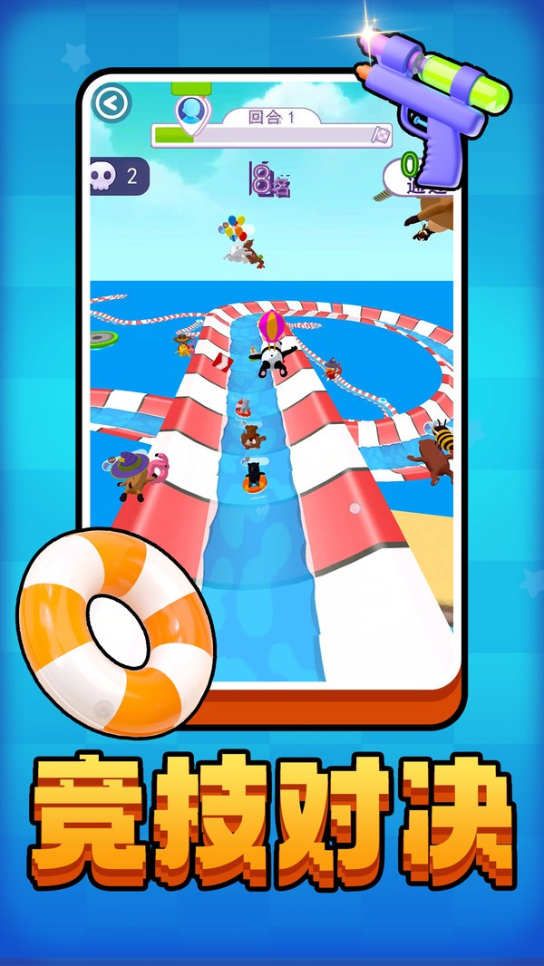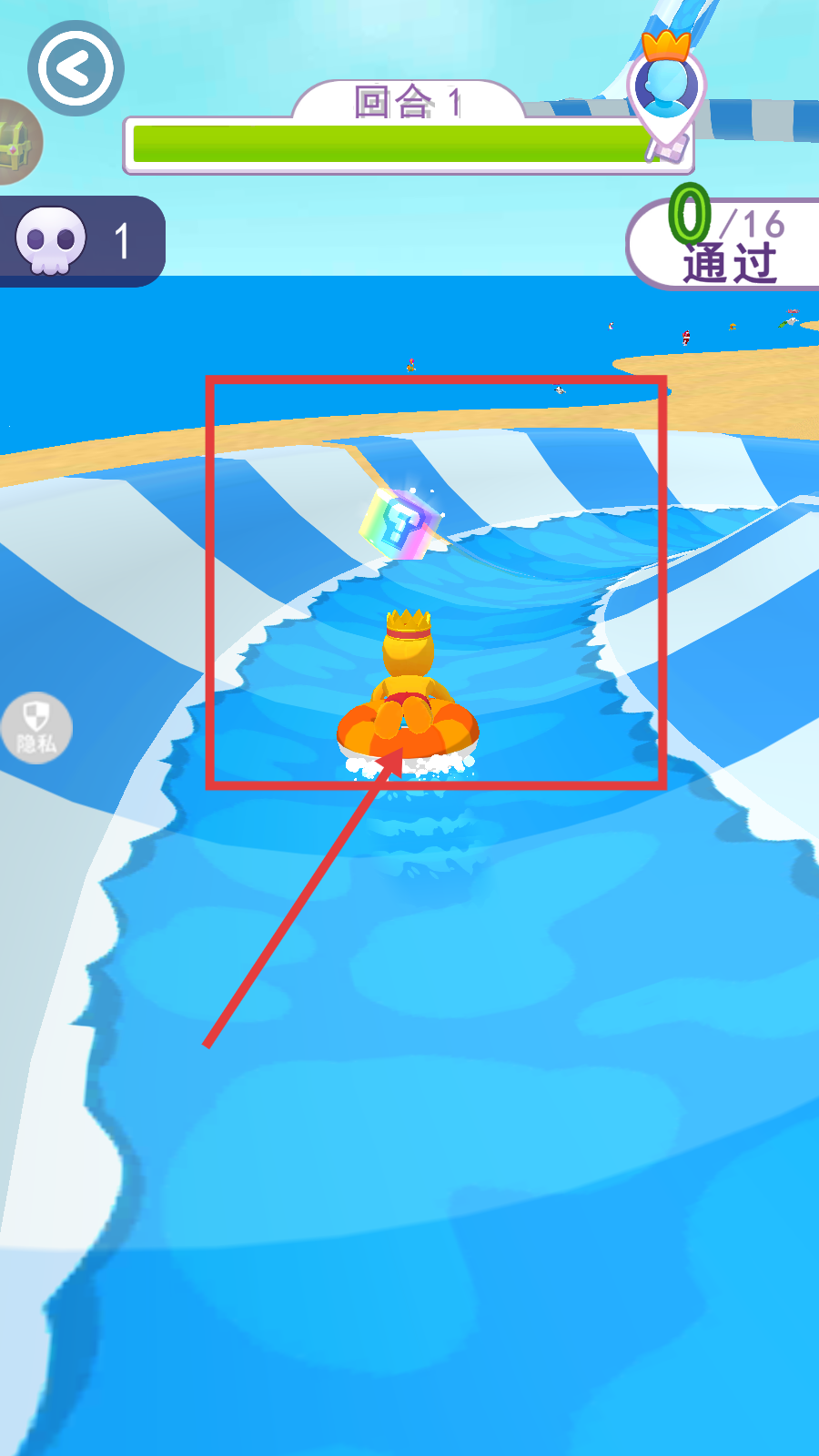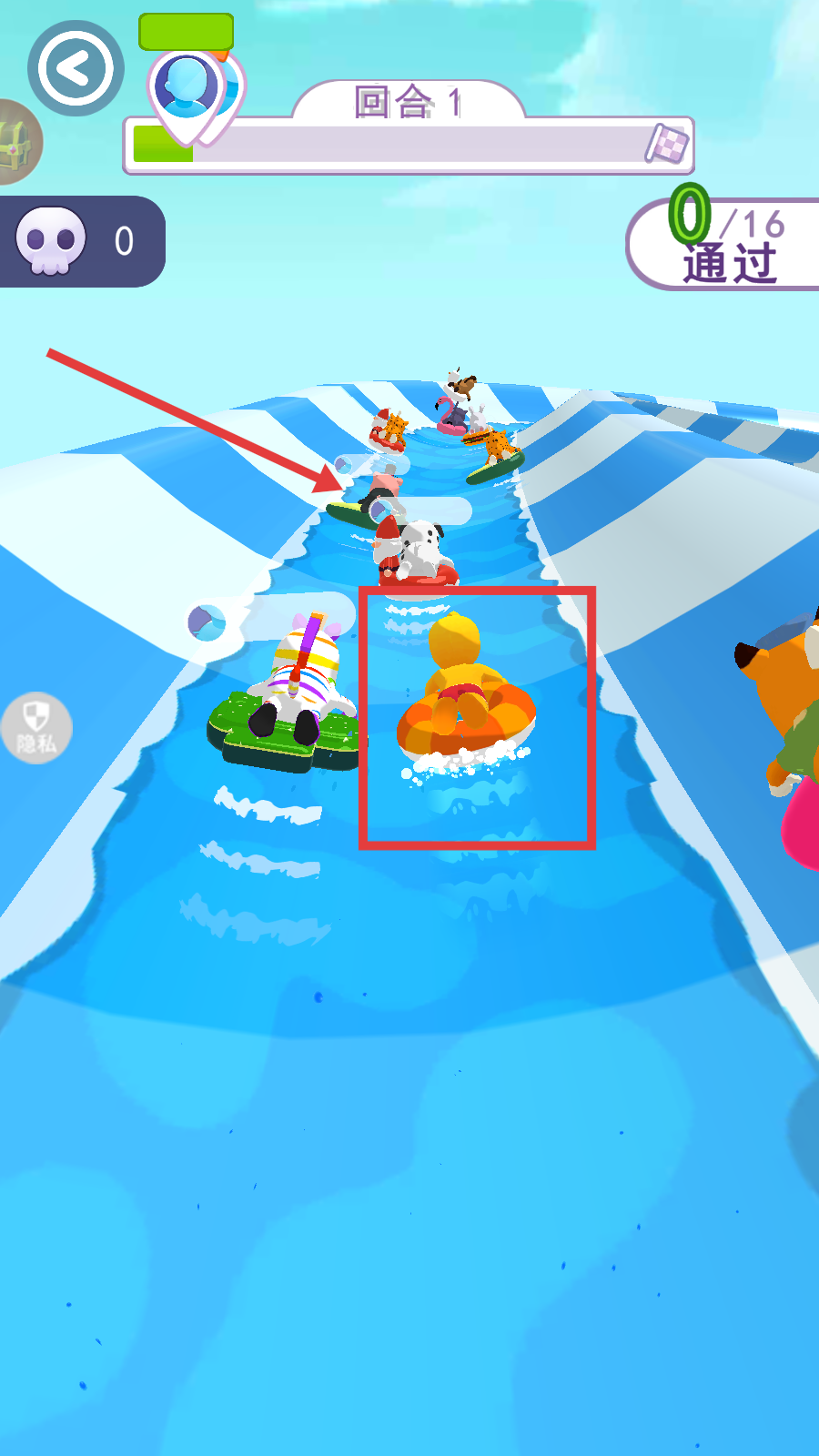 1、参与【回合1】水上竞速,操控角色避开对手,朝着【0/16-通过】目标冲刺,抢占先机。
