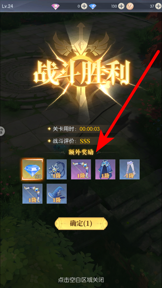 2、战斗胜利后,点击领取额外奖励,包含钻石、装备等资源,这些物资可用于角色养成、装备打造,快速提升战力,应对更高难度内容。