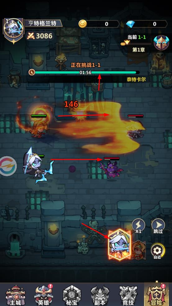 2、职业技能搭配操作:根据当前挑战的地牢关卡特点,选择合适的职业与英雄组成队伍,并为每个英雄搭配适配的技能,在探索过程中根据遭遇的敌人类型灵活释放技能。