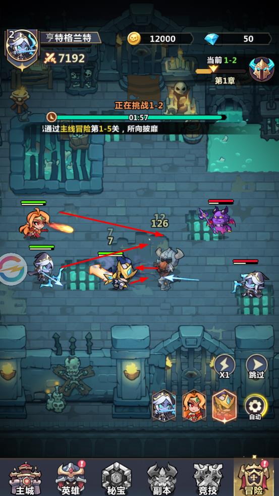 2、进入冒险模式,挑战主线关卡,操控英雄释放技能,击败敌人推进剧情。