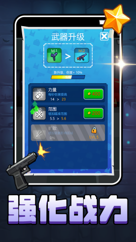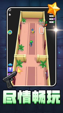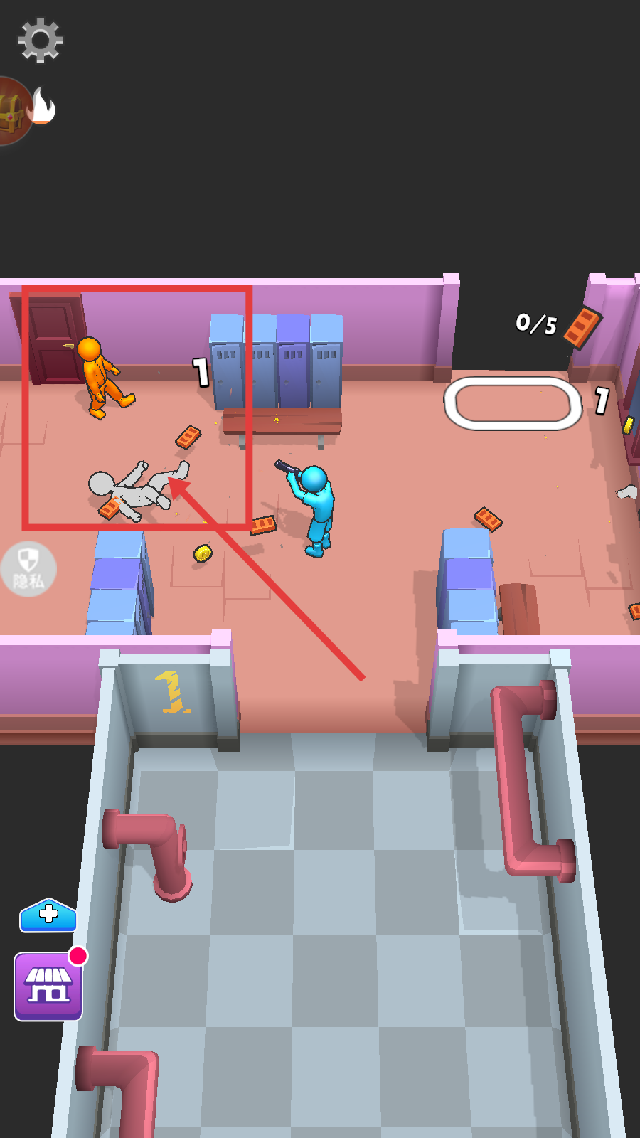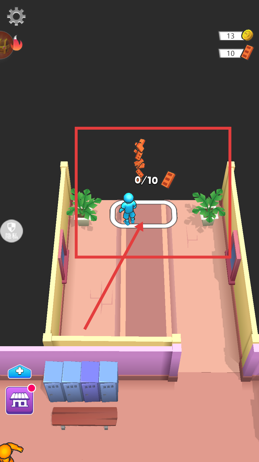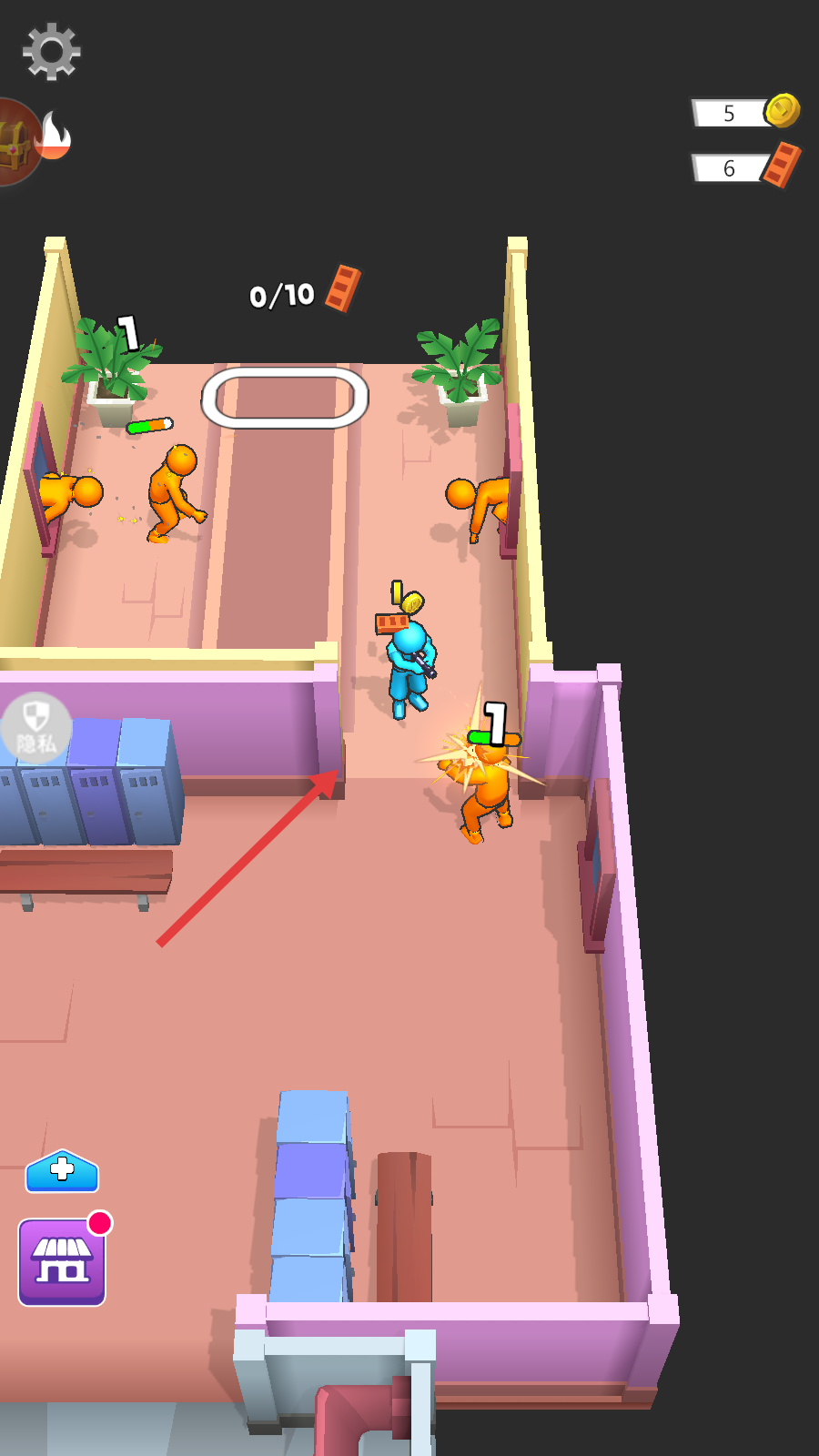 2、穿梭通道迎战【橙色敌人】,边战边捡【砖块】,向【0/10-收集目标】迈进,扩大收益。