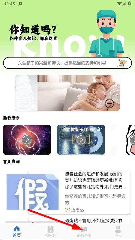 1、打开APP,点击底部胎教故事。