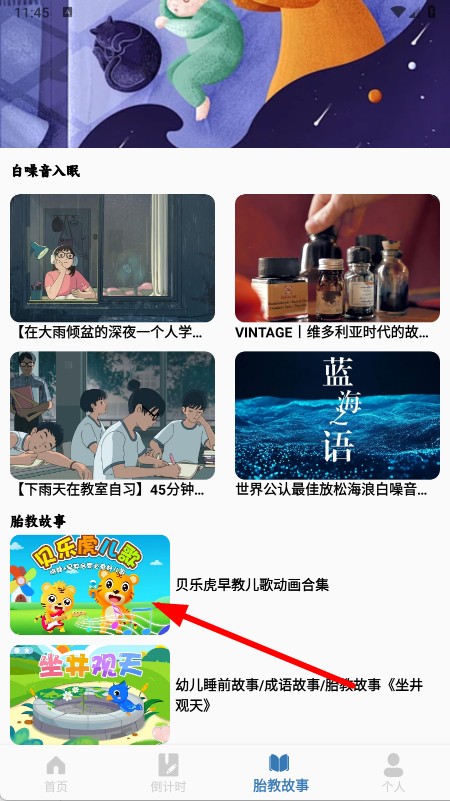 2、在胎教故事页,选择具体内容。