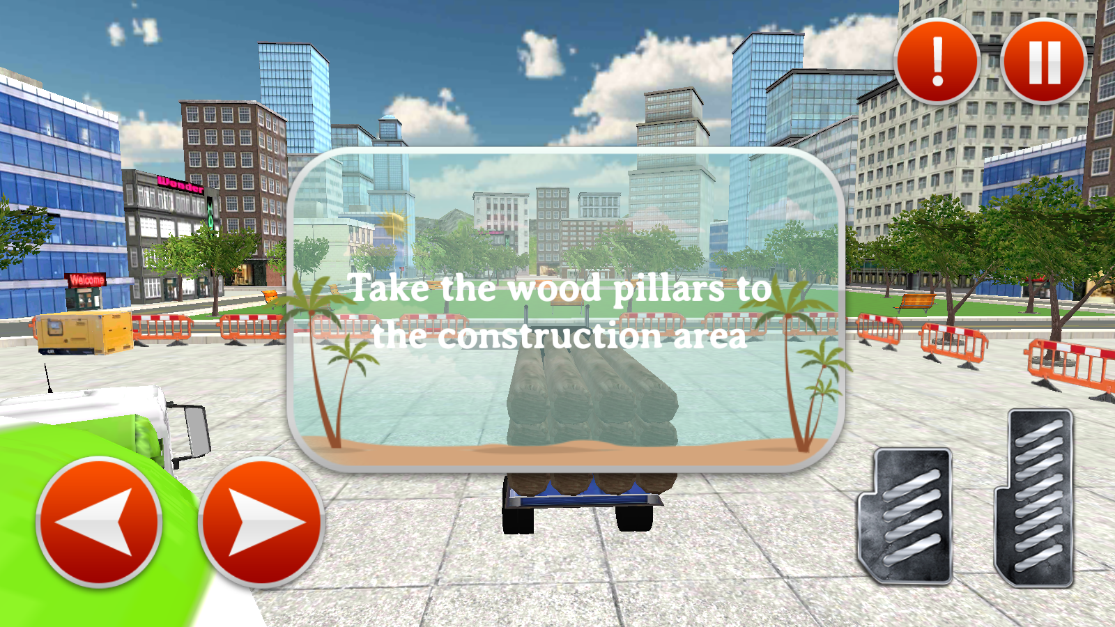 1、操控卡车时,沿【红色箭头】方向,利用右侧【加速按键】,朝广场【橙色护栏】区域行驶。