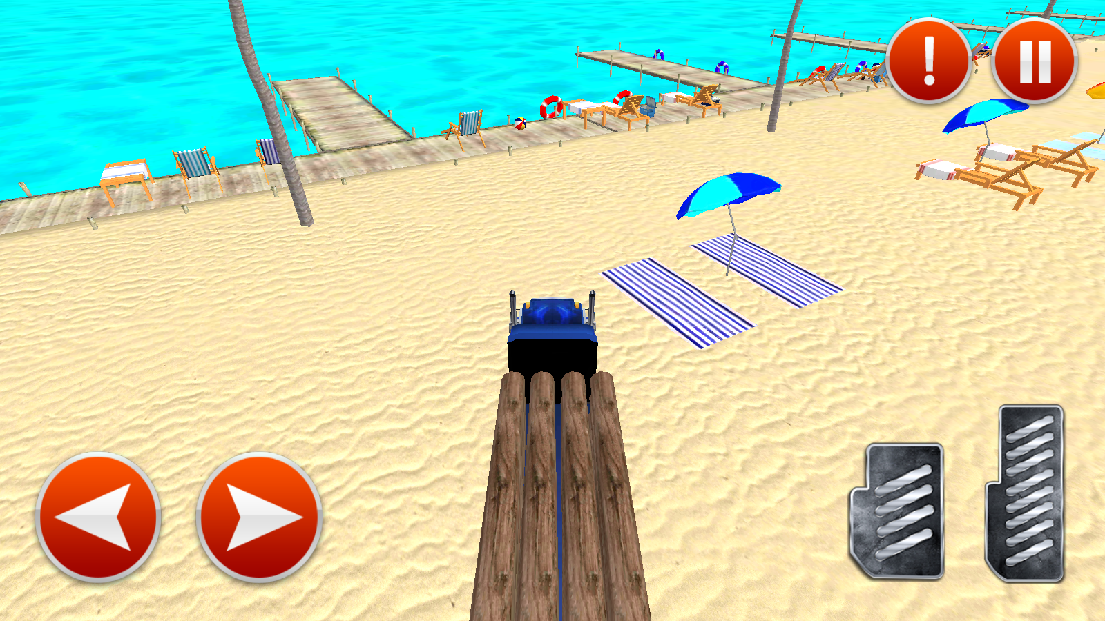 3、抵达沙滩,驾驶卡车沿木栈道,借助右侧按键控速,朝【码头】方向平稳前行。