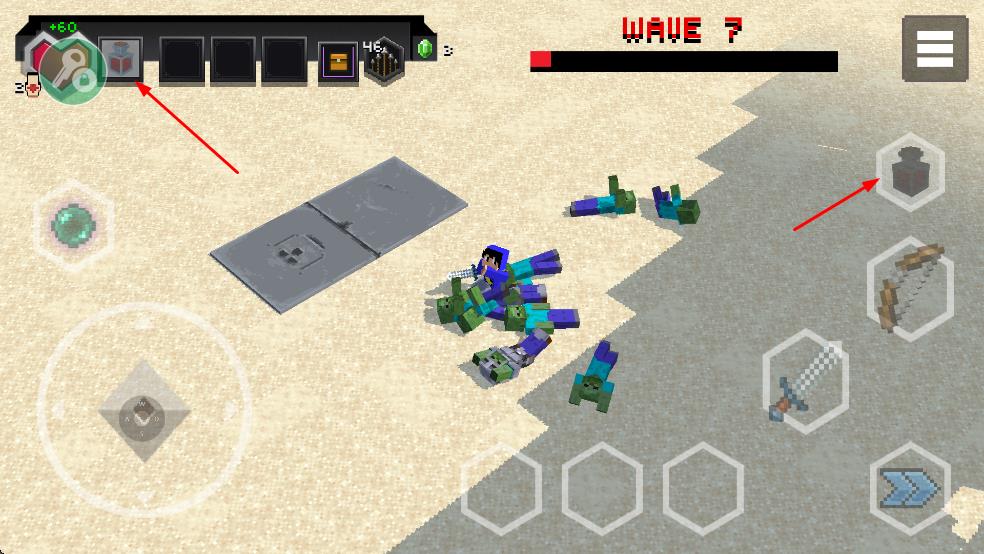 1、战斗中应对多波僵尸,操控角色用近战武器攻击,推进波次挑战。