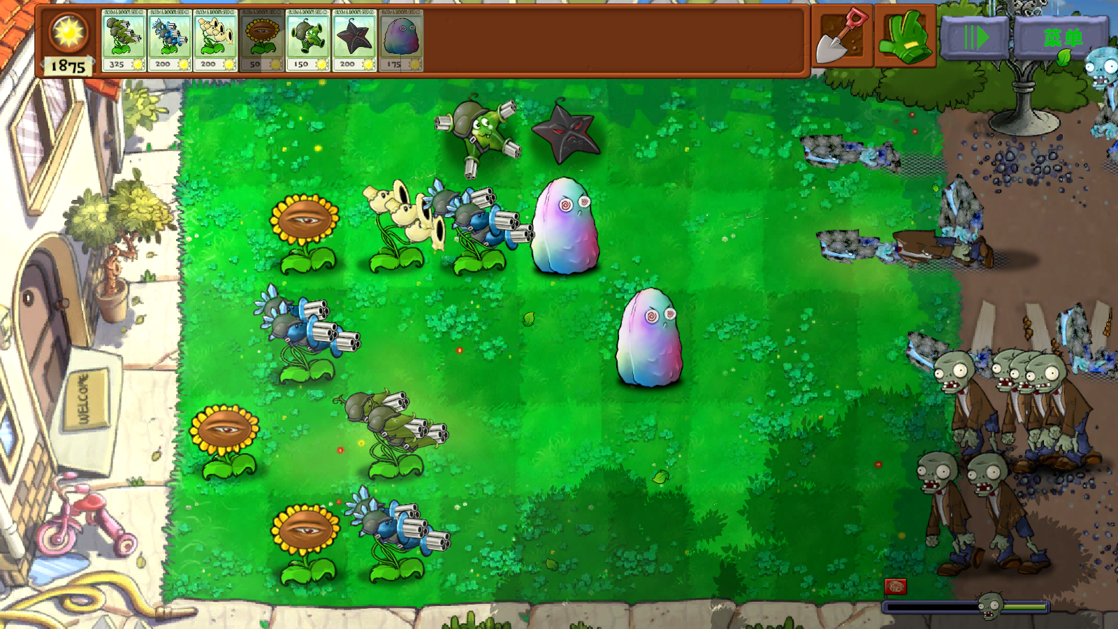 2、快速部署策略:战斗开始后,无需过度纠结格子位置,优先在僵尸进攻路线的关键节点部署高输出植物,利用植物的毁灭级火力快速清除前期僵尸,为后续部署争取时间。