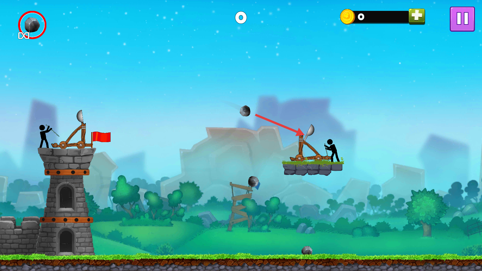 火柴人投石机是一款以火柴人为核心题材的策略塔防游戏,玩家将核心操控投石车展开攻防对战,通过点击屏幕拉动投石车调整张力,释放炮弹精准击毁敌方防线设施,同时需兼顾自身布防抵御敌方反击,击败敌人可获取金币,用于升级投石车本身、解锁炸弹等特殊炮弹及护盾、铠甲等防御装备,玩法兼具策略与爽感。