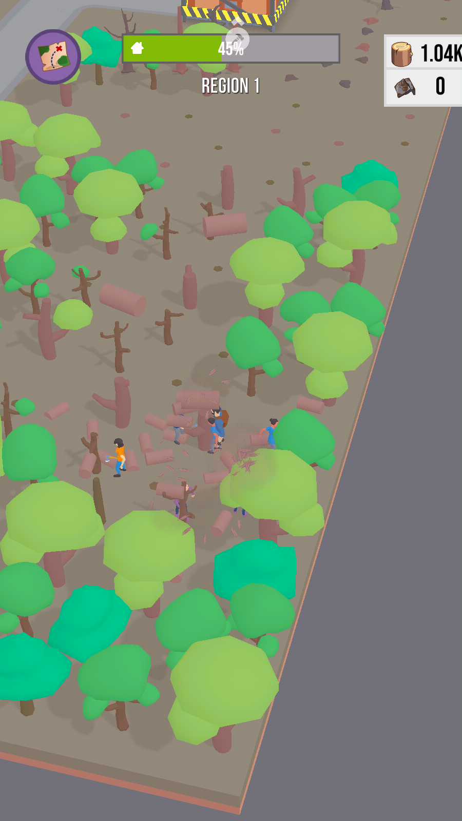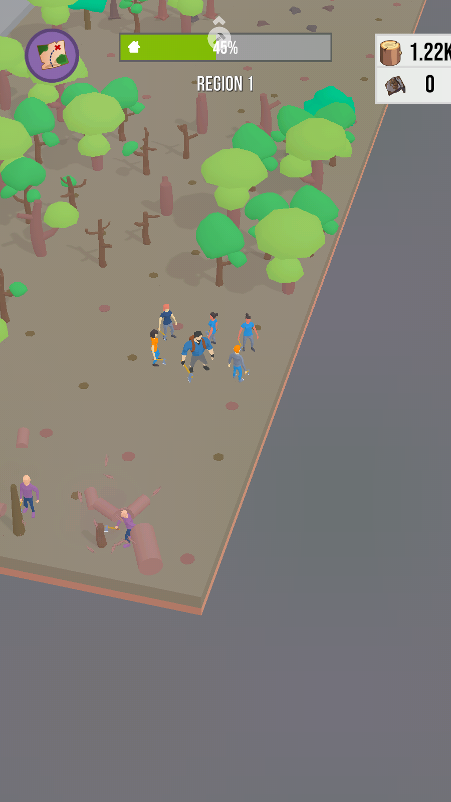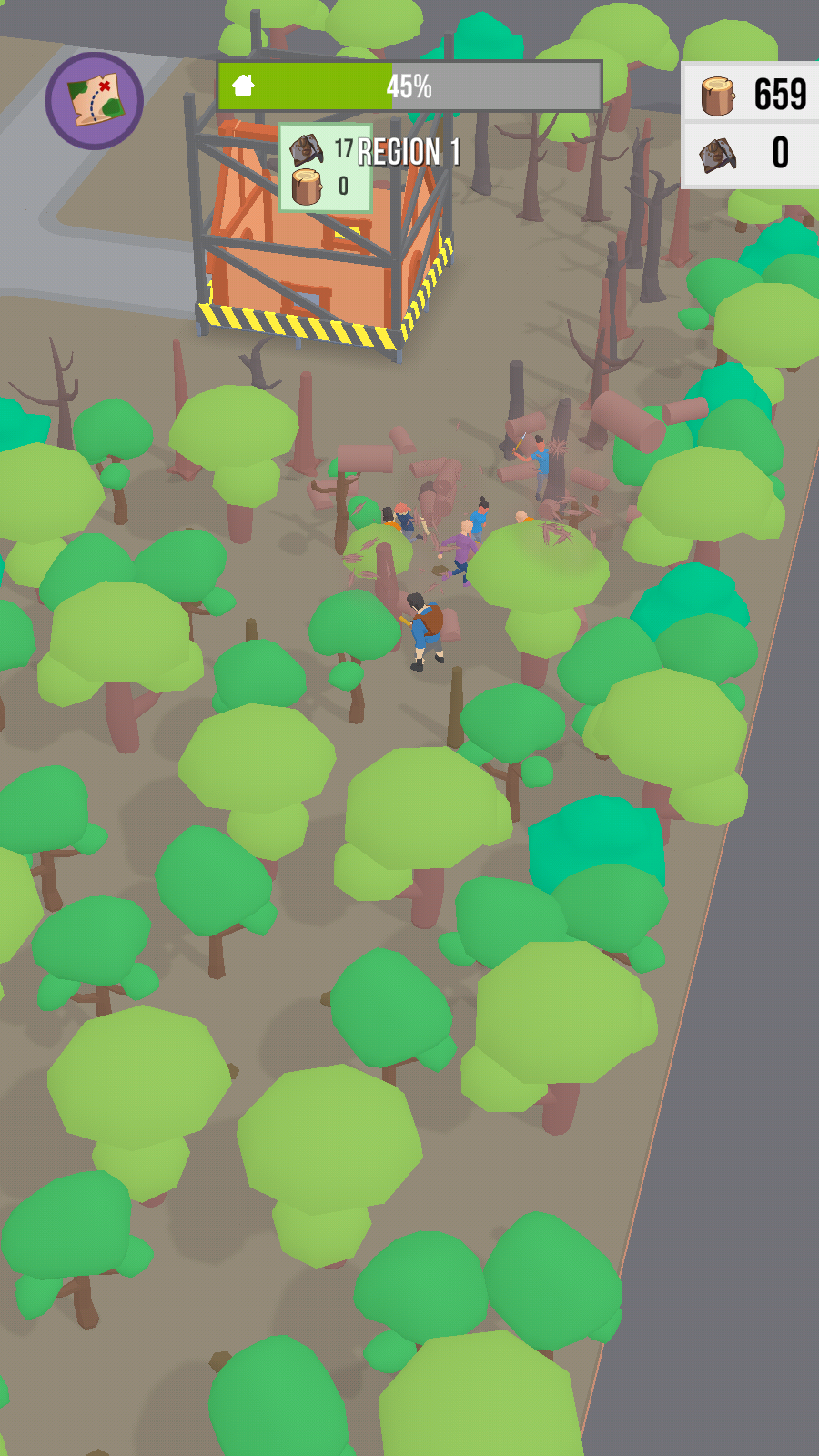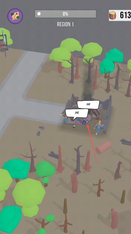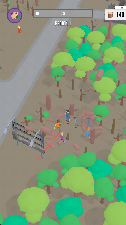2、点击或滑动屏幕指挥角色收集树木等资源、屏幕右上角显示资源数量、为生存做准备。