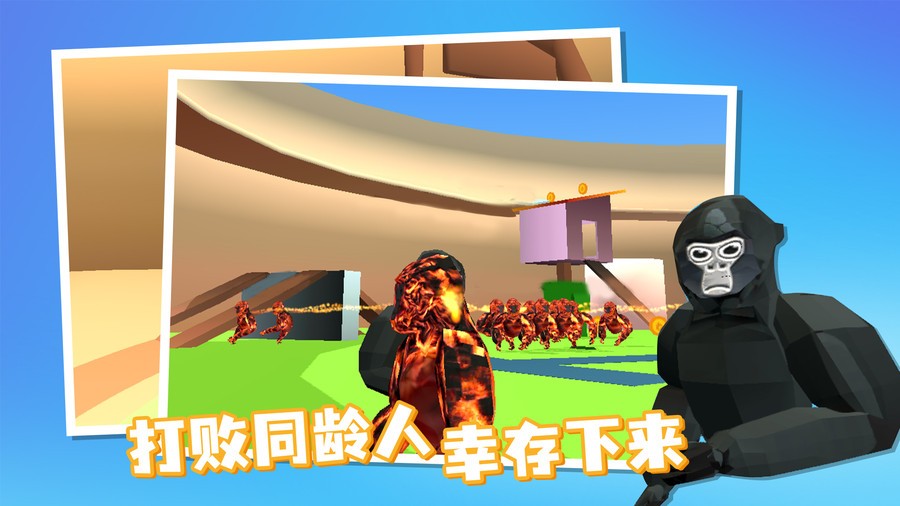 2、游戏开启,滑动屏幕操控角色移动,快速观察周边环境,寻找可供躲避或周旋的地形,如巨石、树木等,时刻留意大猩猩动向,准备随时改变路线。