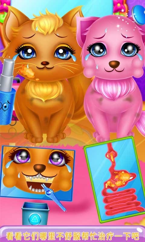 2、治疗效果可视化:治疗过程中能看到小动物症状逐渐改善,如感冒小狗不再流鼻涕、受伤小猫能正常活动,直观的恢复效果带来强烈的治愈感与成就感。