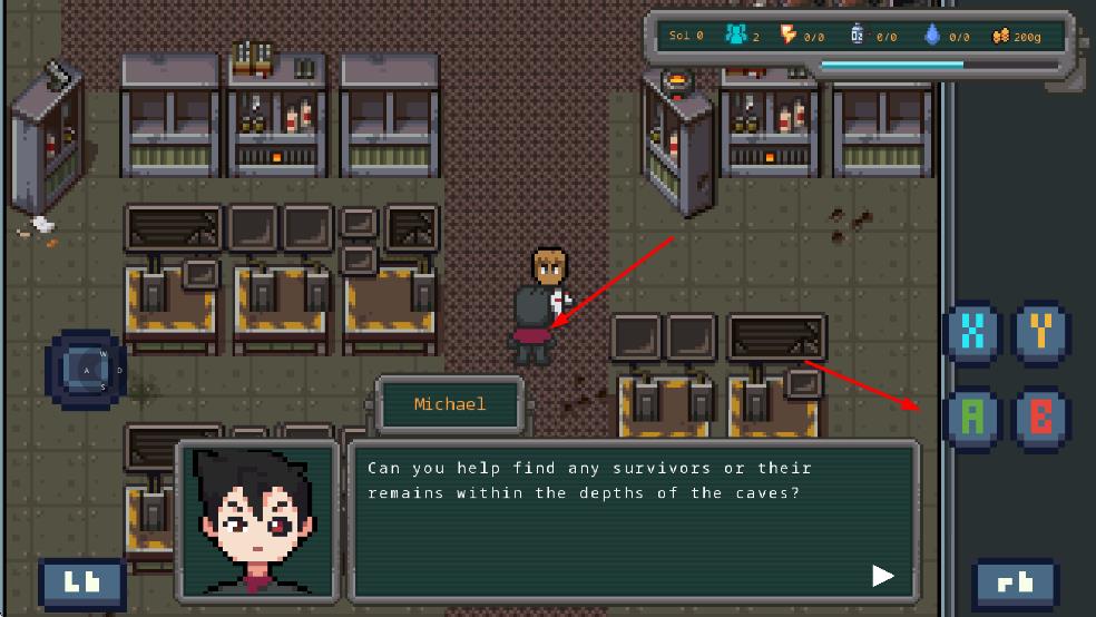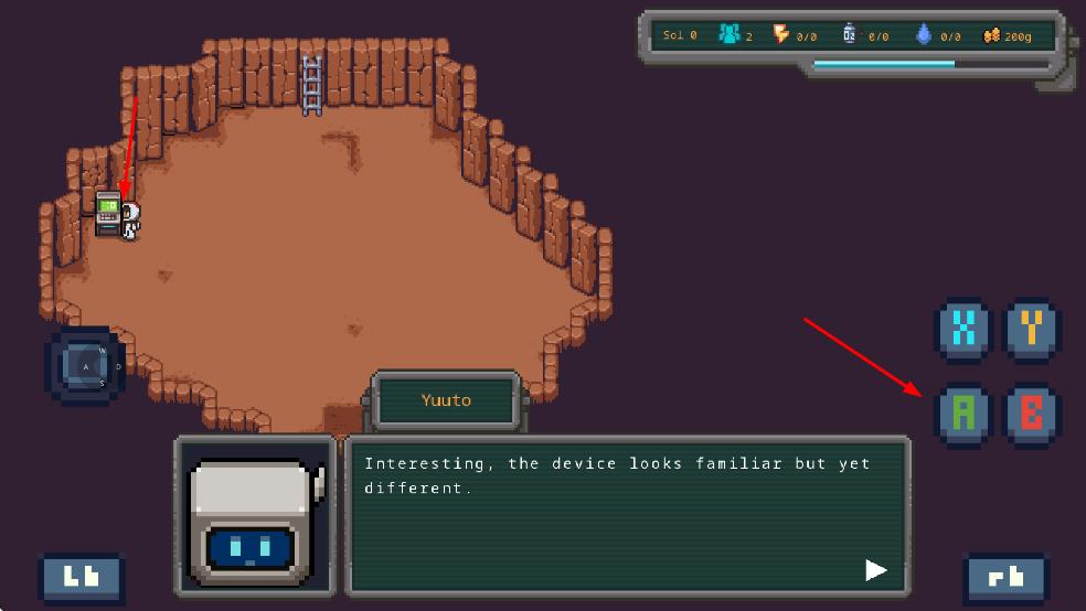1、角色控制与互动:通过左方按钮操控角色在火星表面移动,找到索拉娜等关键角色后,点击A按钮与其对话,获取氧气机等设施的设计图,为后续建造奠定基础。