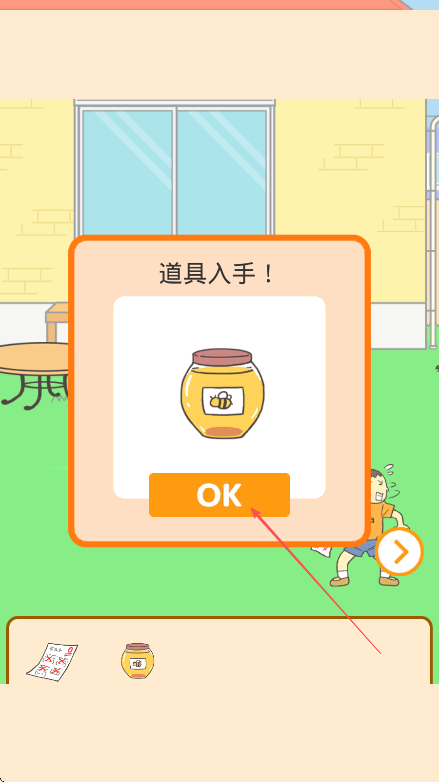 1、进入游戏场景,看到地上的试卷,点击拾取,同时,留意桌上的蜂蜜罐,点击获取道具蜂蜜罐。
