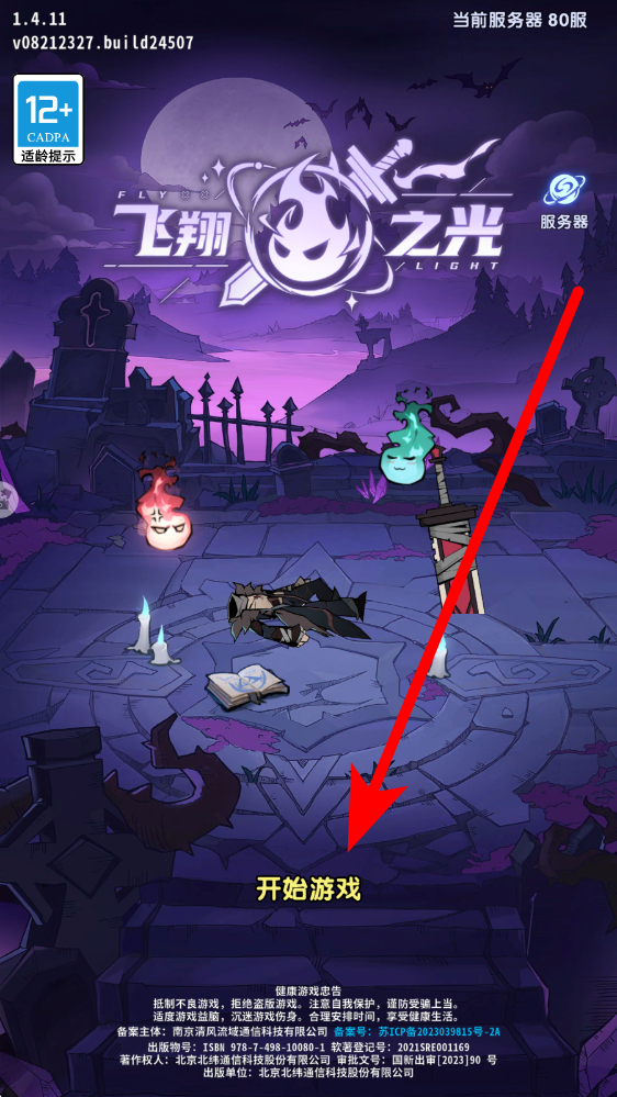 1、新人在游戏登录界面,点击开始游戏,创建或选择角色,进入大墓地等初始场景,正式开启飞翔之光的冒险征程,接触基础战斗与玩法。
