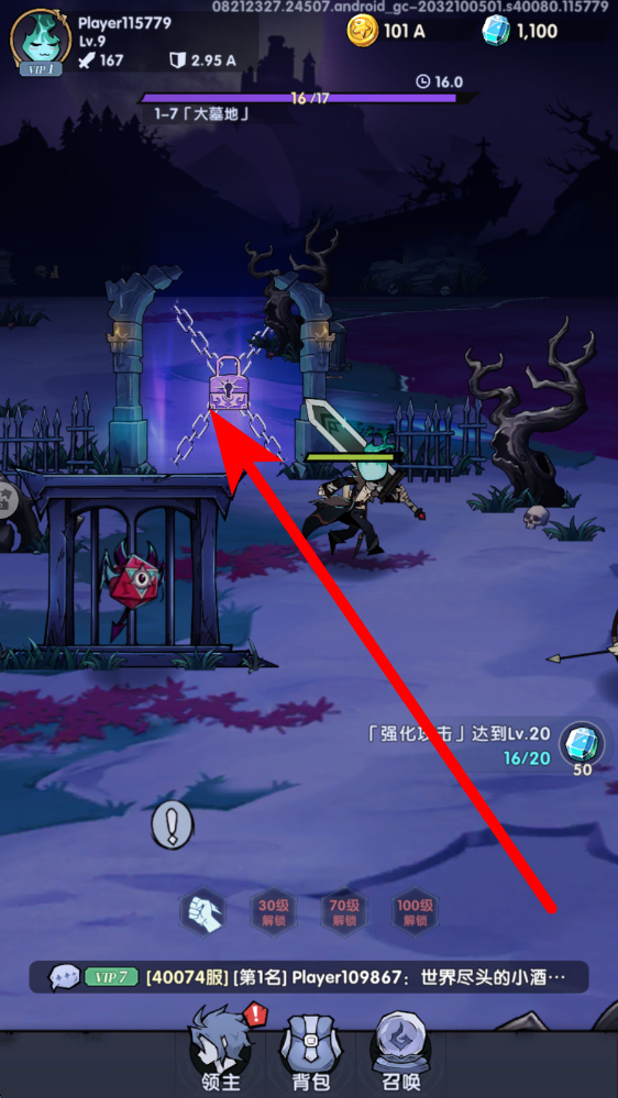 3、随着关卡推进,遇到带有锁链锁头标识的区域7大墓地,达成前置条件如提升等级、完成任务后即可解锁,探索新场景,开启更多挑战。
