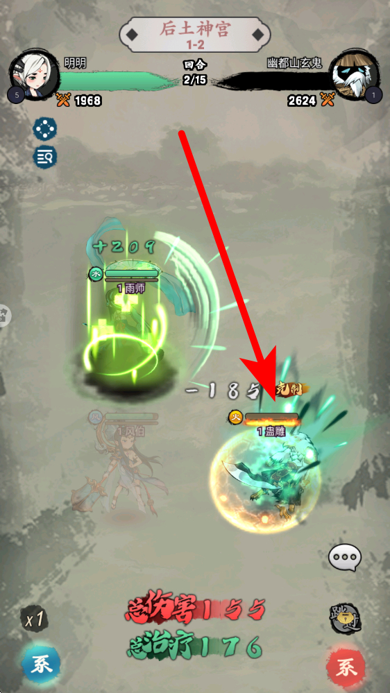 2、在探险界面选后土神宫等关卡,战斗前布阵,将雨师风伯等仙灵安排至合适位置,战斗中仙灵自动普攻,适时释放技能,利用克制关系盘雕受克制打击敌人。