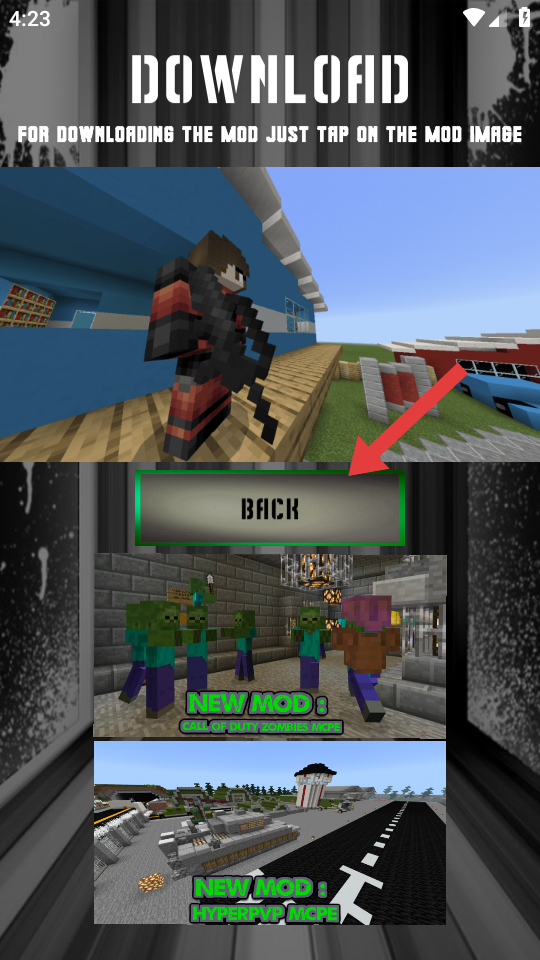 3、若想换模组,返回下载页点BACK切换,重复选图以及加载流程,尝试用不同的MOD拓展我的世界体验。