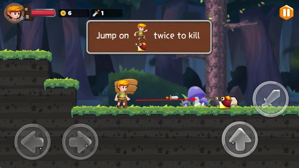 3. 遇蜗牛等敌人,可挥剑攻击,或按提示跳踩两次消灭。