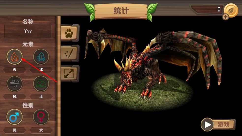 1. 选元素火/冰等、颜色、身体部位头/尾等、尺寸、性别,个性化塑造。