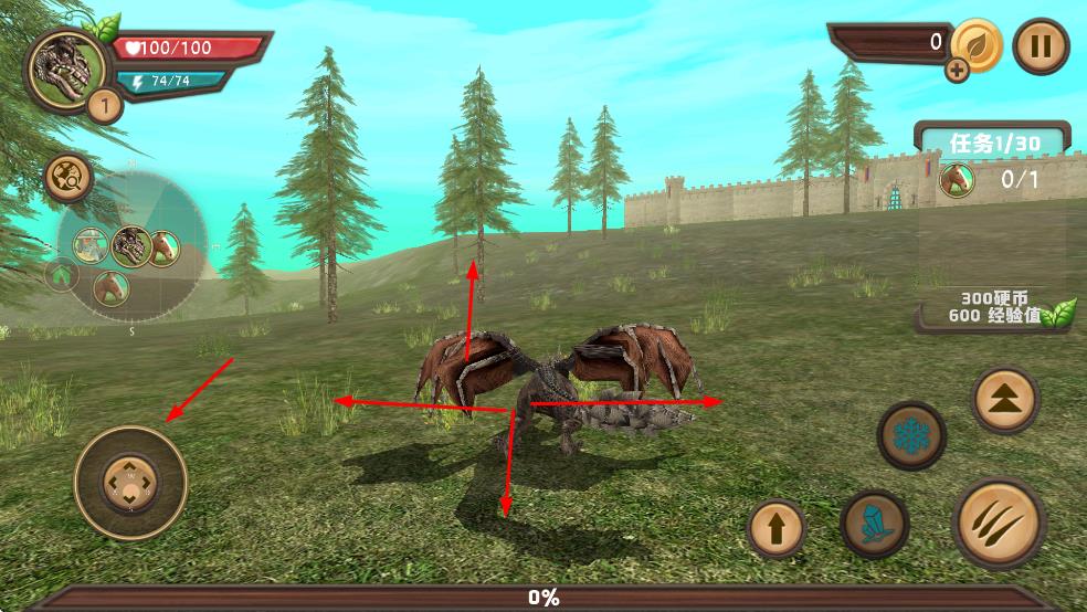 2. 左摇杆移动,右侧按键释放技能,执行任务如捕捉目标,探索场景。