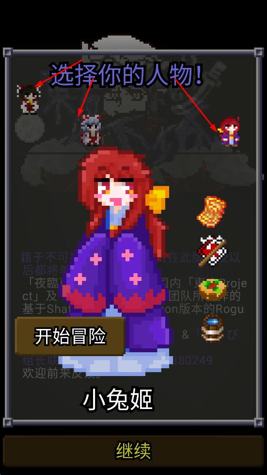 1、选择角色如小兔姬,点击开始冒险进入游戏,开启楼层探索之旅。
