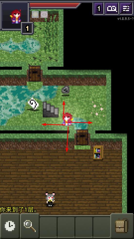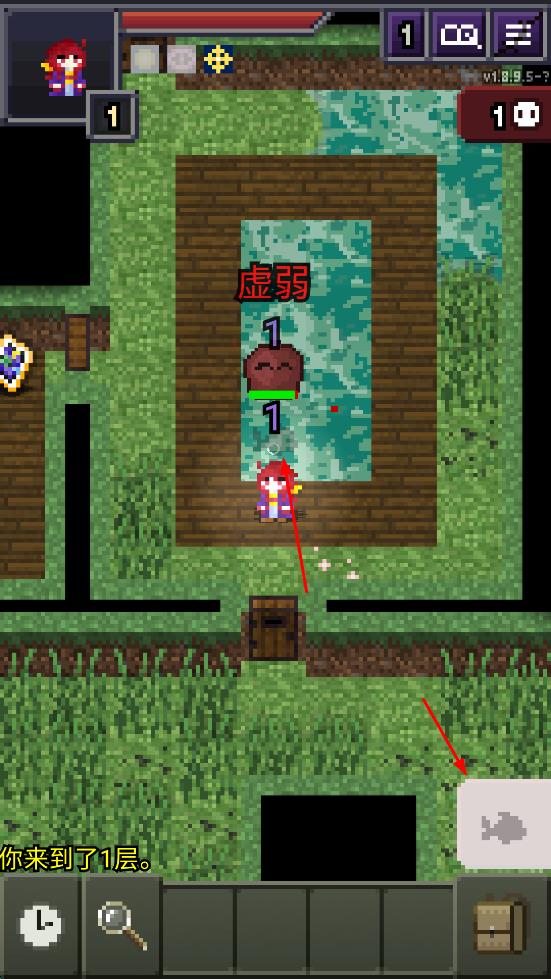 2、操控角色上下左右移动,探索1层地图,发现宝箱、怪物等场景元素。