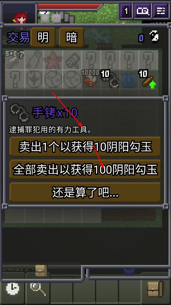 3、进入交易界面,针对道具如手铐,选择单个或全部卖出获取阴阳勾玉。