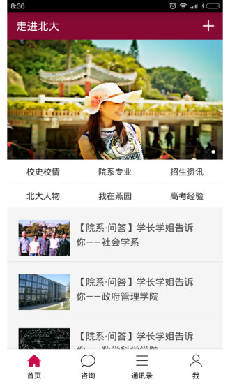 各类资讯: 北大的校史校情、院系专业、优秀人物、学子故事、招生资讯、高考经验...