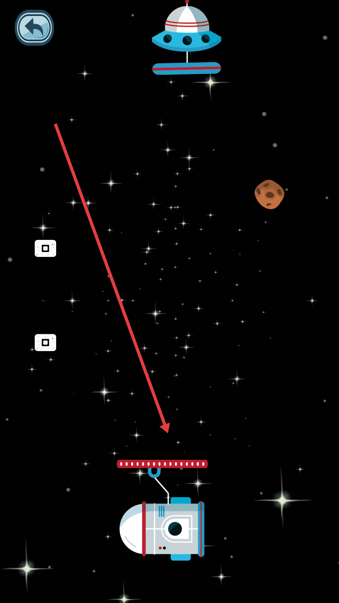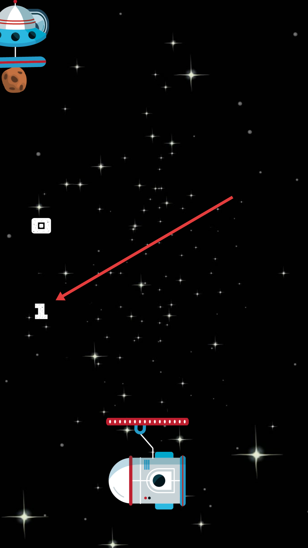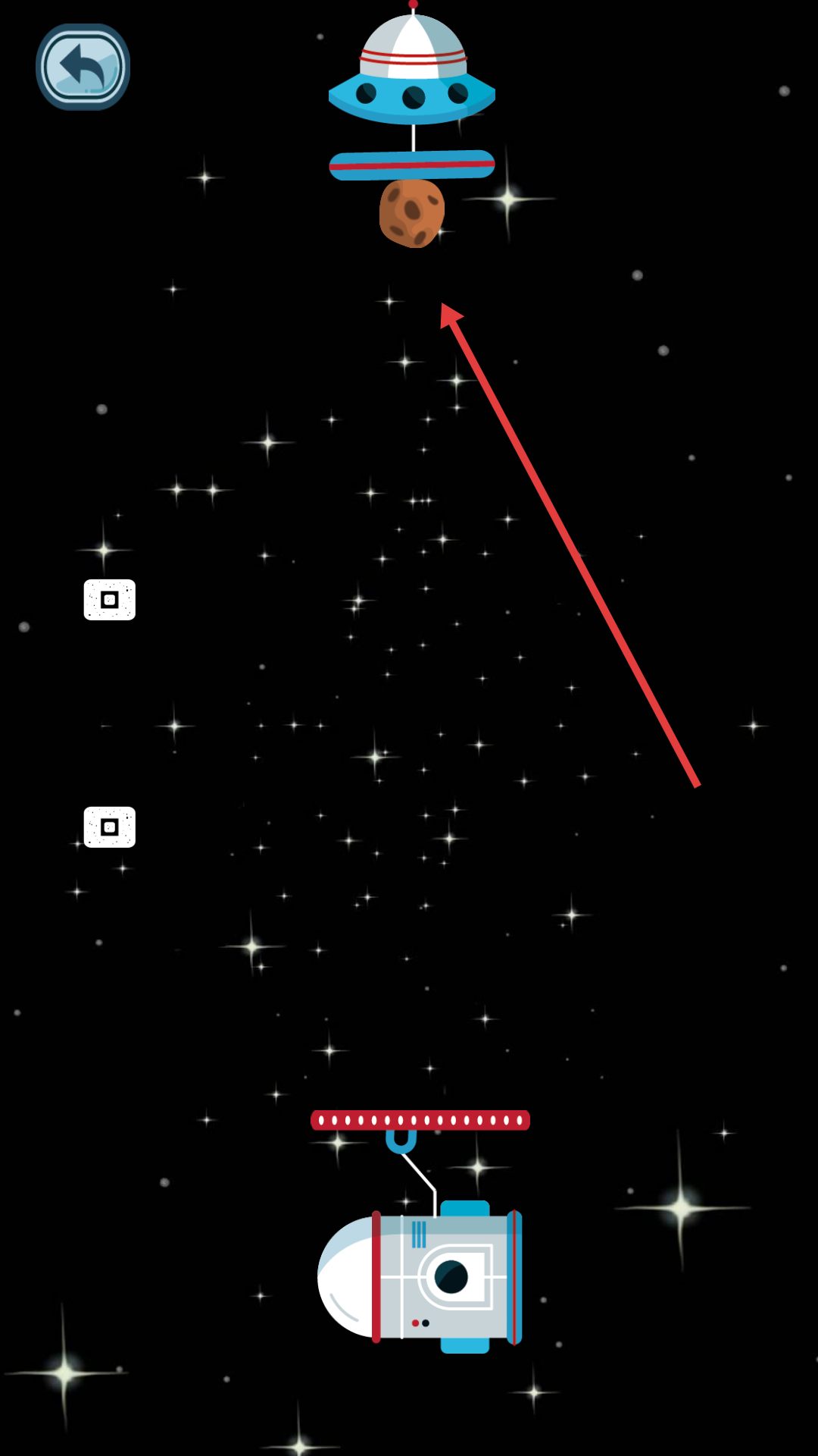 2、飞船外的挡板当作乒乓球拍,让陨石向飞船上方的红色装置靠近,接住每一个球。
