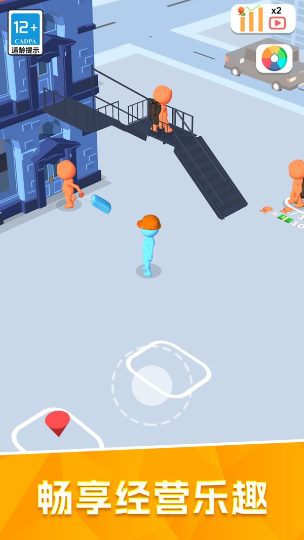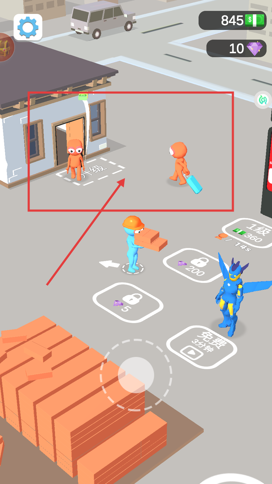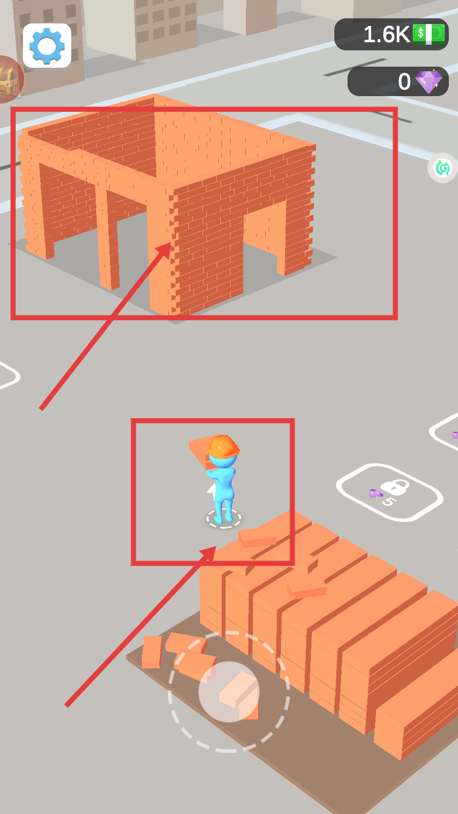 1、操控【蓝色工人】搬运砖块,搭建【建筑框架】,逐步完善建筑基础结构。