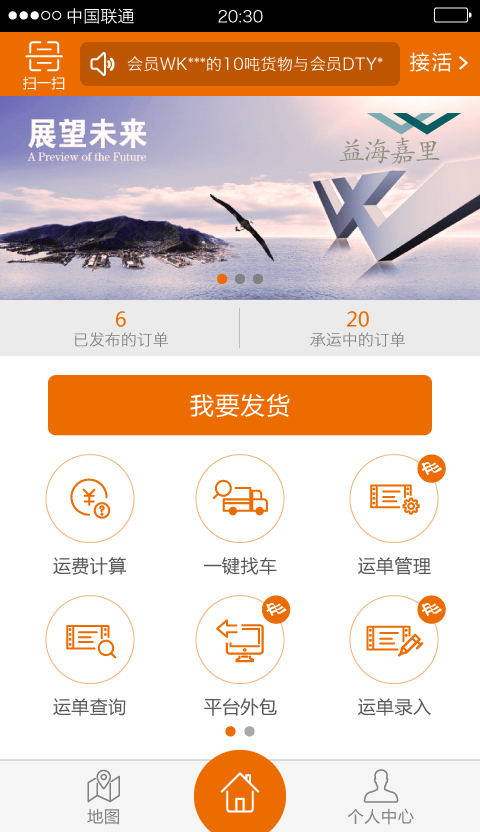 自主交易,车货匹配,地图跟踪; 与货运系统无缝对接,一键接单、转发任务,大大缩短响应时间。