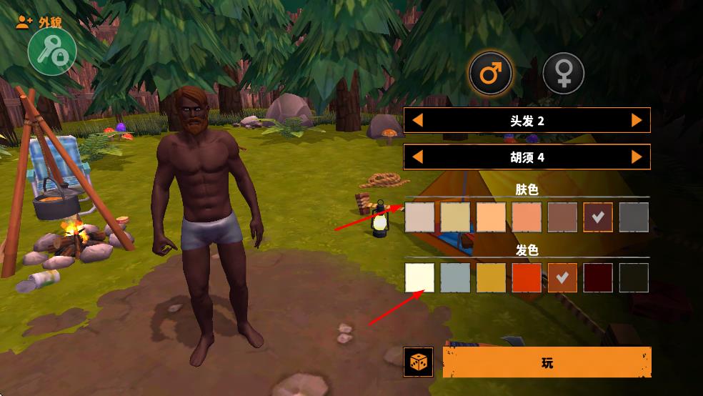 1、创建角色时,自定义头发、胡须、肤色与发色,确认后点击玩进入生存场景。