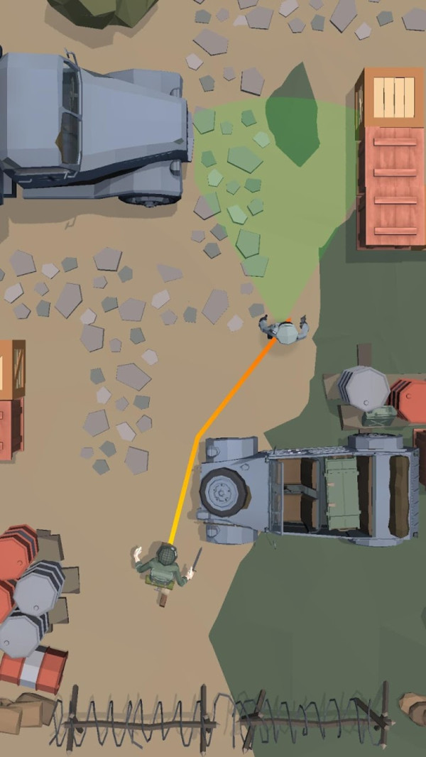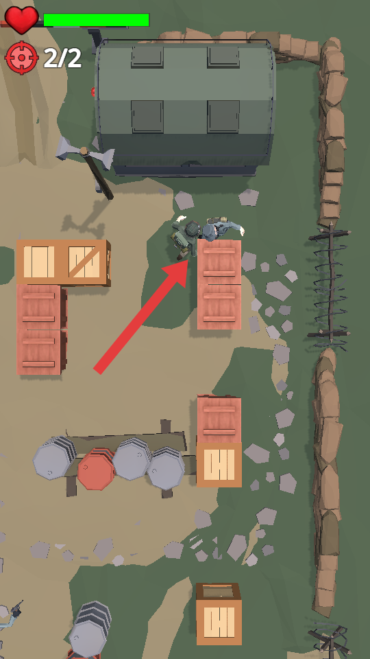 1、进入关卡,关注左上角目标进度如2/2,借助木箱、油桶等掩护物,点击规划移动路径,避免暴露在敌人视野。