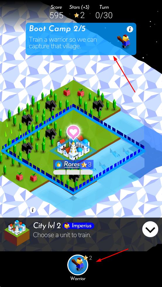 2、消耗星星训练战士等单位,增强战力,准备占领村庄。