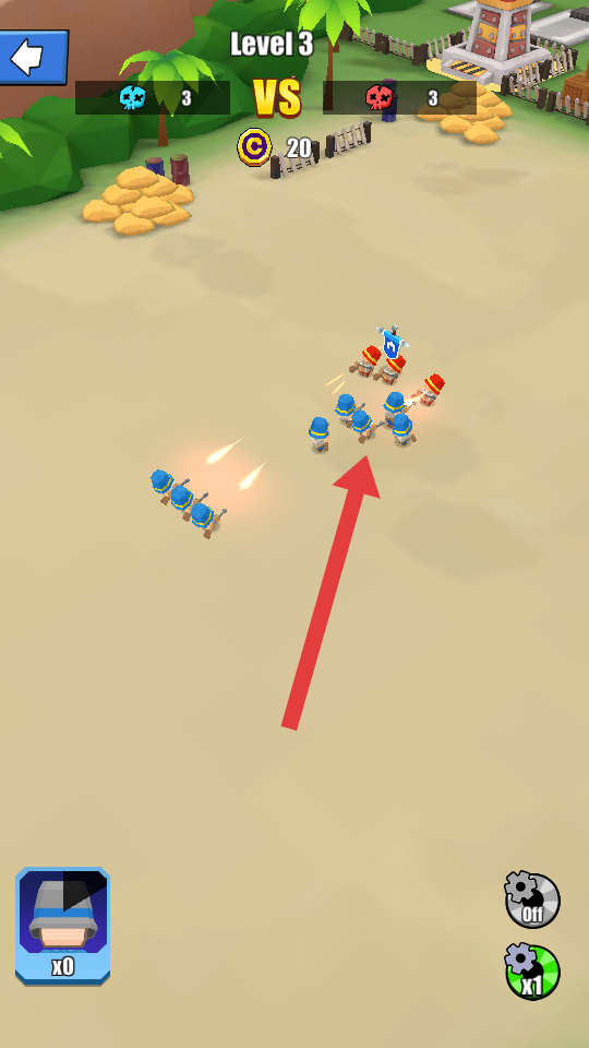 2、多元士兵阵容搭配:游玩内提供数量众多的士兵类型,涵盖攻击型、防御型等不同功能,玩家可自由尝试各种各样的阵容组合,还能够前往商店解锁武器装备。