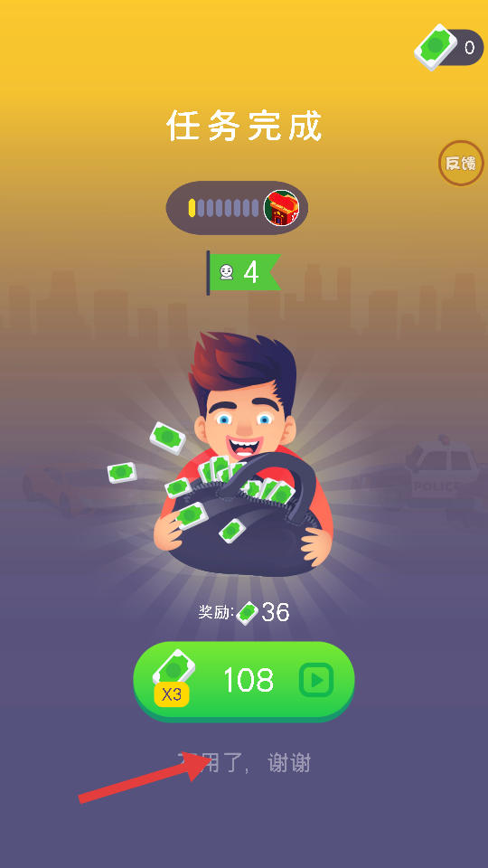 3、收集完指定资金后,找到场景中的撤离点,确认周围无安保与人群时,点击“撤离”按钮,成功离开即可完成关卡,解锁下一场景。