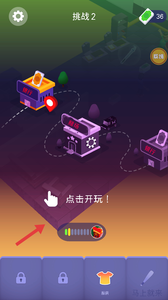 1、进入游戏后,在关卡选择界面确定目标房屋,查看该关卡的安保分布与人群活动提示,点击开始潜入进入房屋场景。